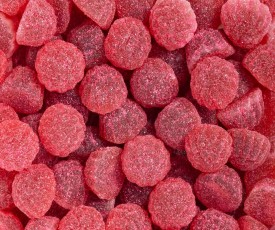 Gomitas dulces y sabrosas, de color rojo, ideales para decorar tartas y mesas dulces, perfectas para fiestas y celebraciones.