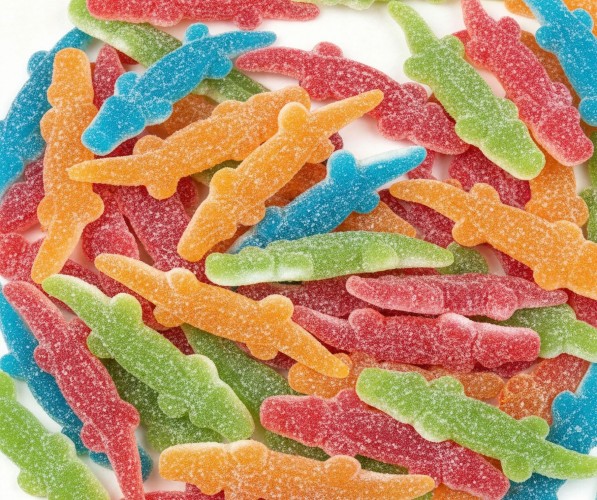 Gomitas dulces y sabrosas, con forma de flor, de colores y sabores surtidos, ideales para decorar tartas y mesas dulces, perfectas para fiestas y celebraciones.