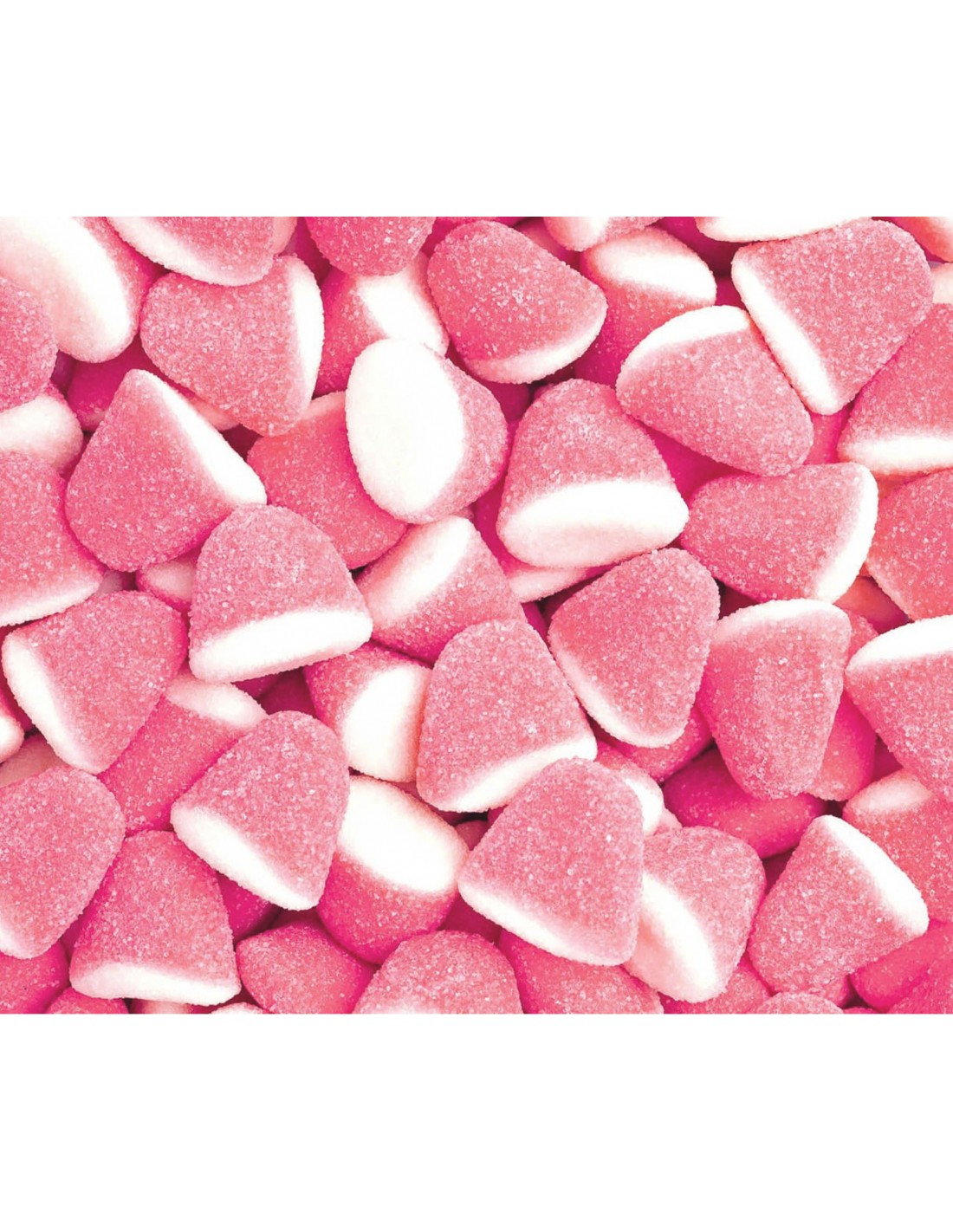Gomitas dulces y sabrosas, de color rosa y blanco, ideales para decorar tartas y mesas dulces, perfectas para fiestas y celebraciones.